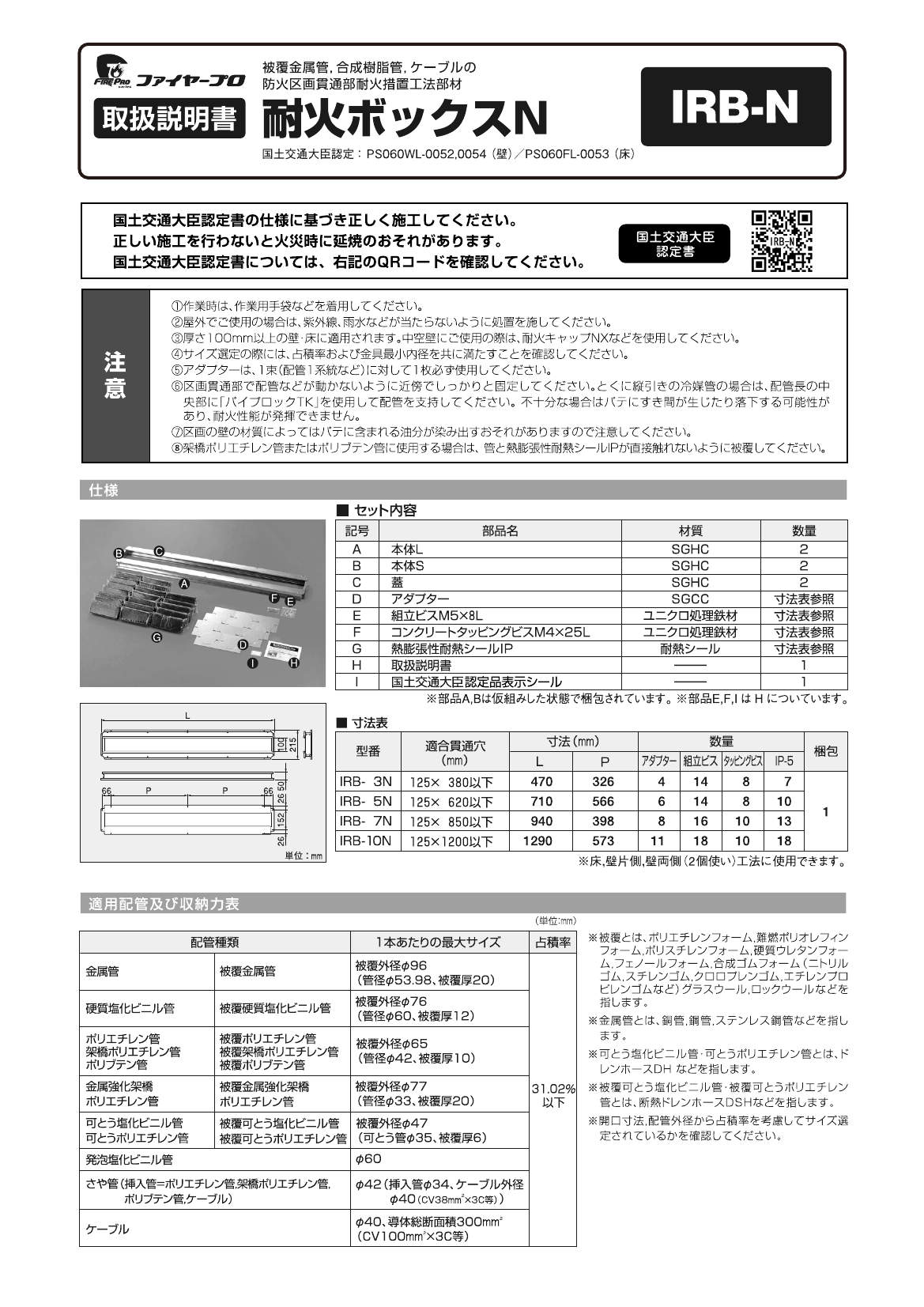 認定書を熟読のうえ、施工してください。