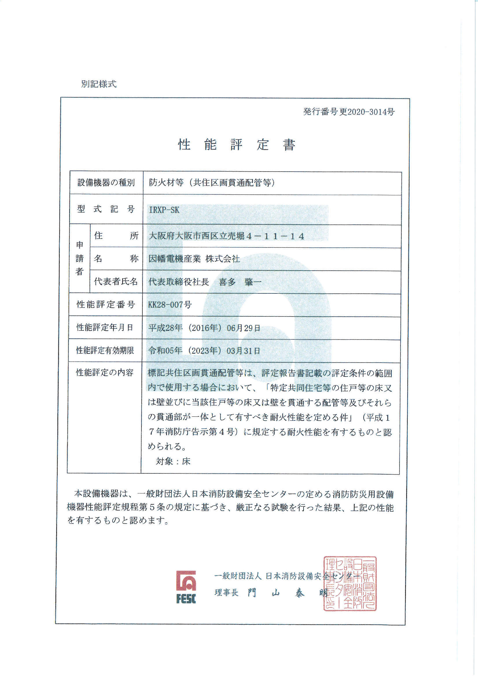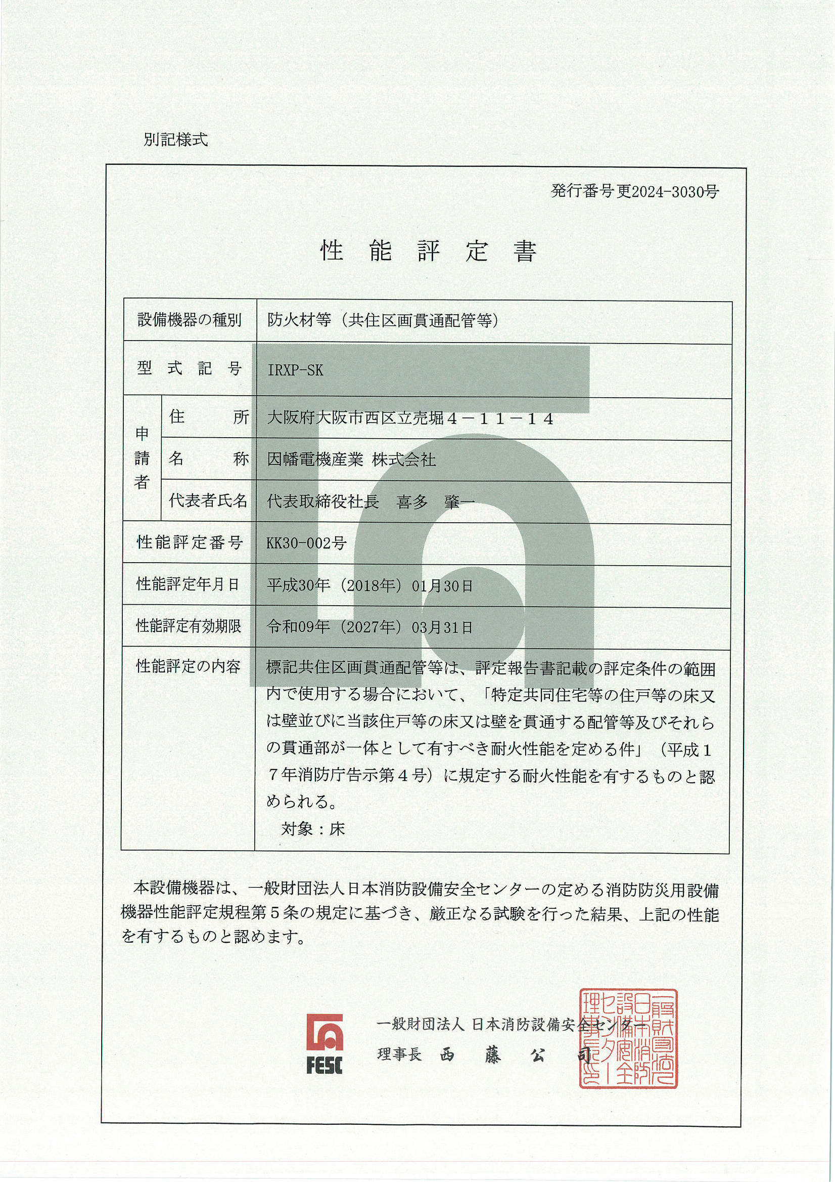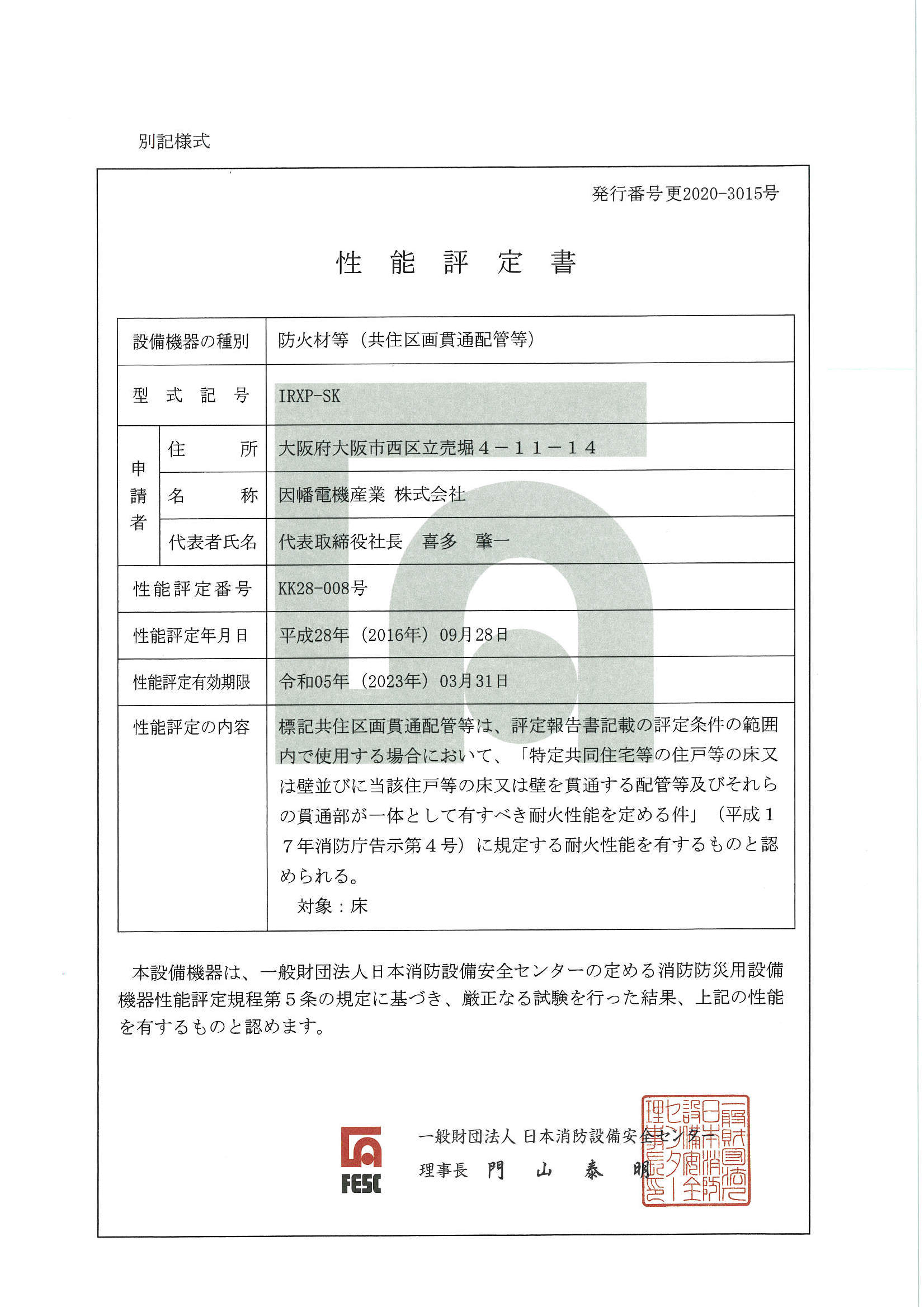 防火区画貫通部材(タイカエックス/タイカX)