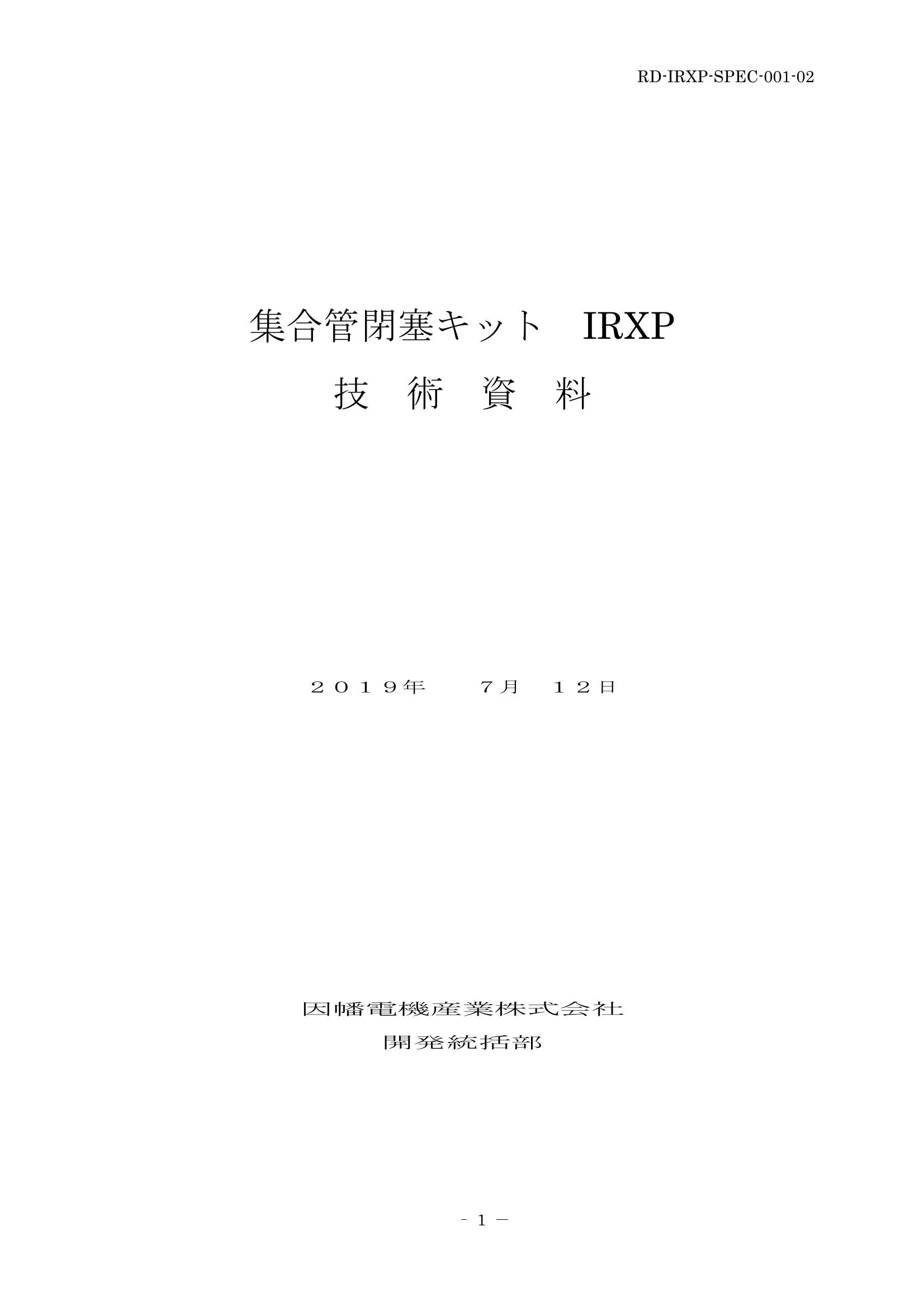 【IRXP-SK】集合管閉塞キット